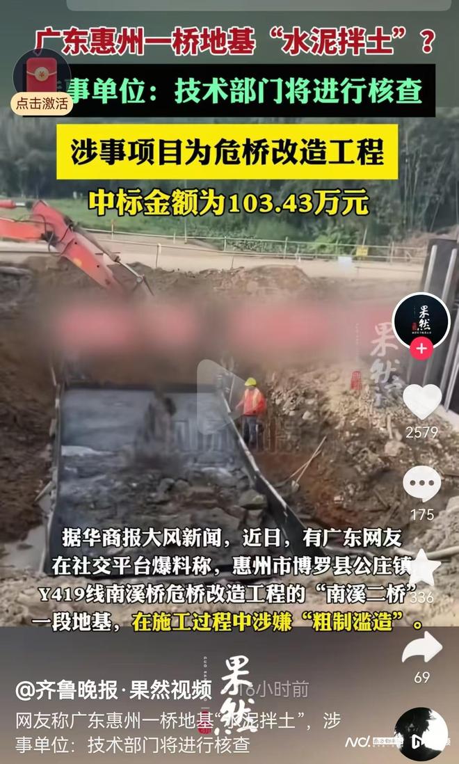 惠州一危桥改造工地桥基建设被曝“水泥拌土”官方回应了